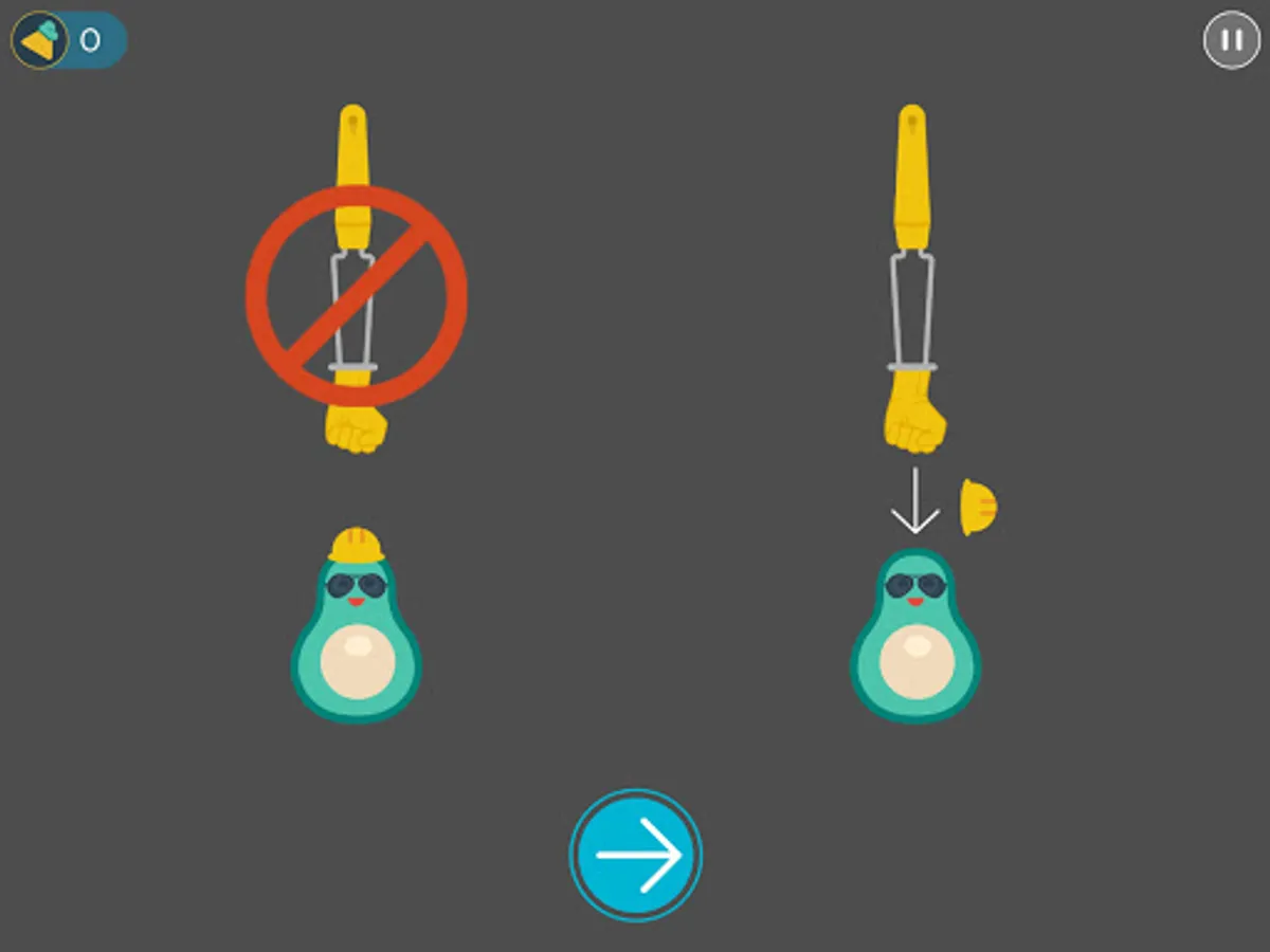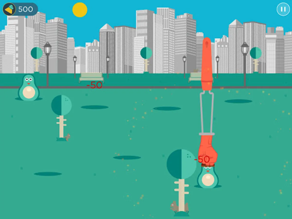 Players need to smash avocados that have no hat or that tip their hat but avoid smashing avocados with spiky hats or with electric hats.