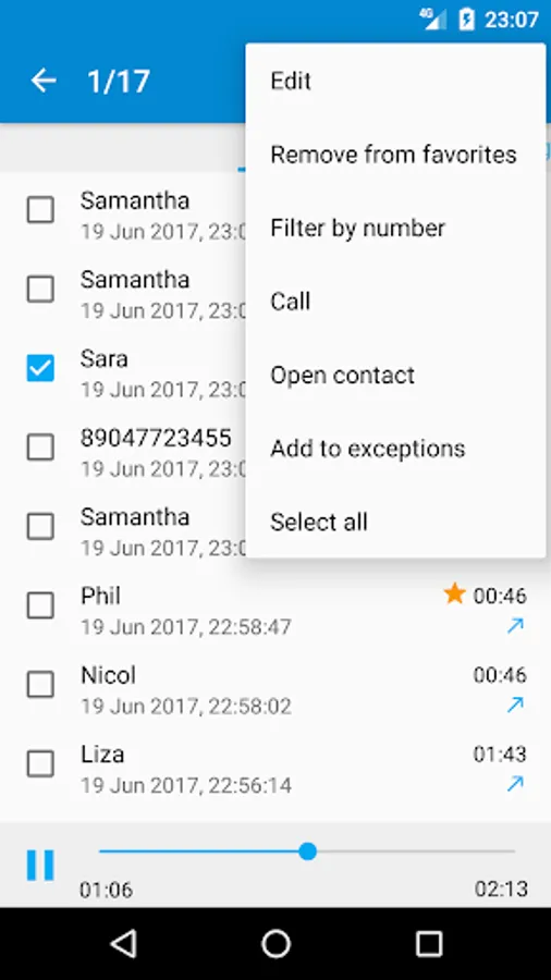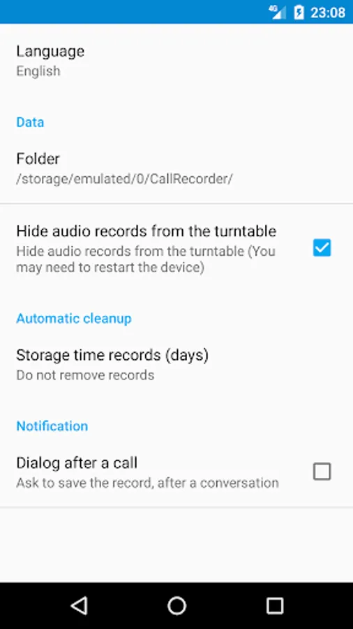 - Can not save conversations lasting less than N- seconds (only in the full version)