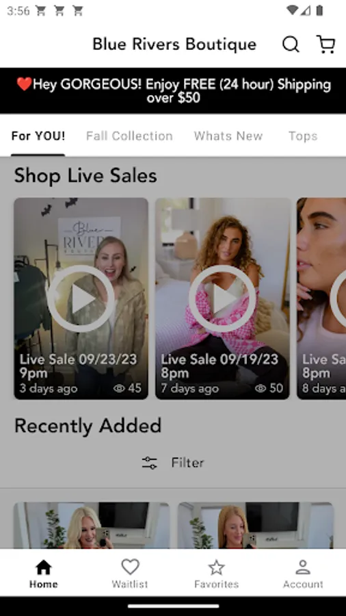 Welcome to Blue Rivers Boutique! We offer women's apparel and accessories in all sizes and styles! Shop our app to get early access to items on our website, watch our lives faster and easier as well as join waitlists for hot ticket items! We offer free shipping in the USA.