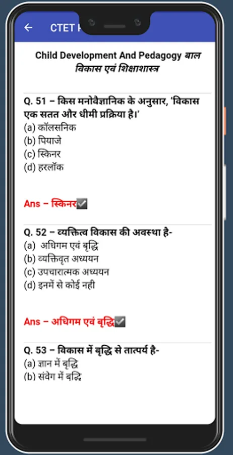 CTET 2023 In Hindi App Will provide to detail explanation of Ctet Pedagogy in Hindi CTET exam held two times in every year. In This App you Learn Bal Vikas Evam Shiksha Shastra Child Development and Pedagogy MCQ and Pedagogy in Hindi Onliner Question.