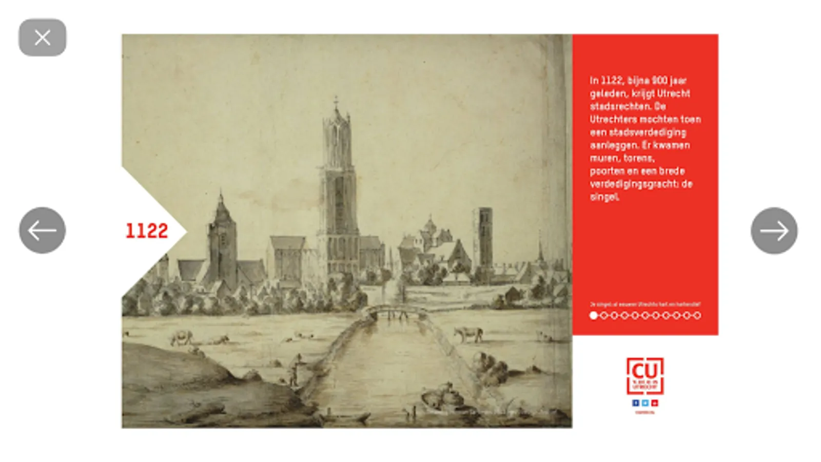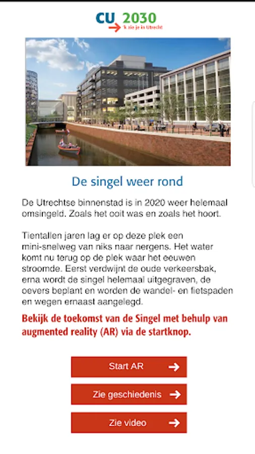 Next to the AR functionality, you can go through the history of the Singel of Utrecht and watch a video on the renovation of the Paardenveld (10 minutes walking distance from the Marga Klompébrug).