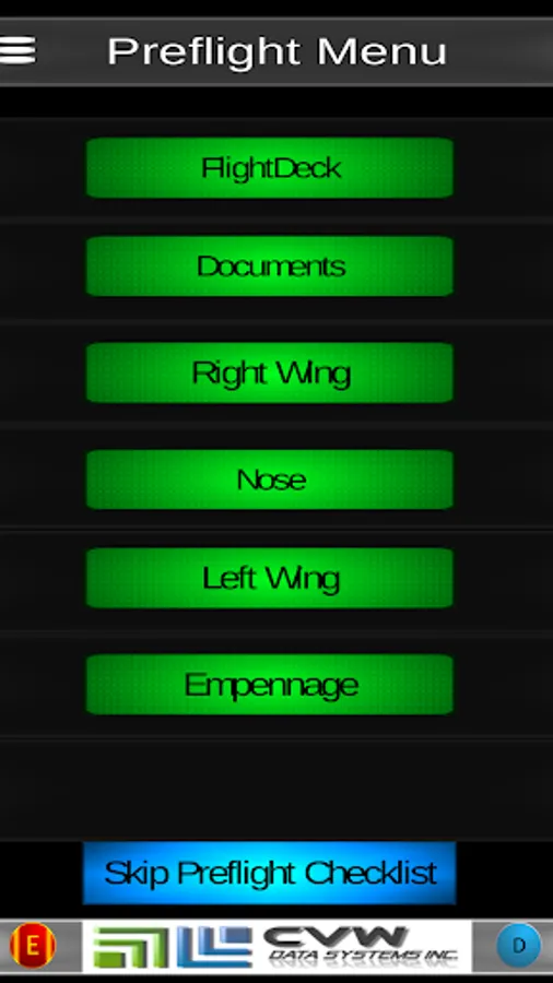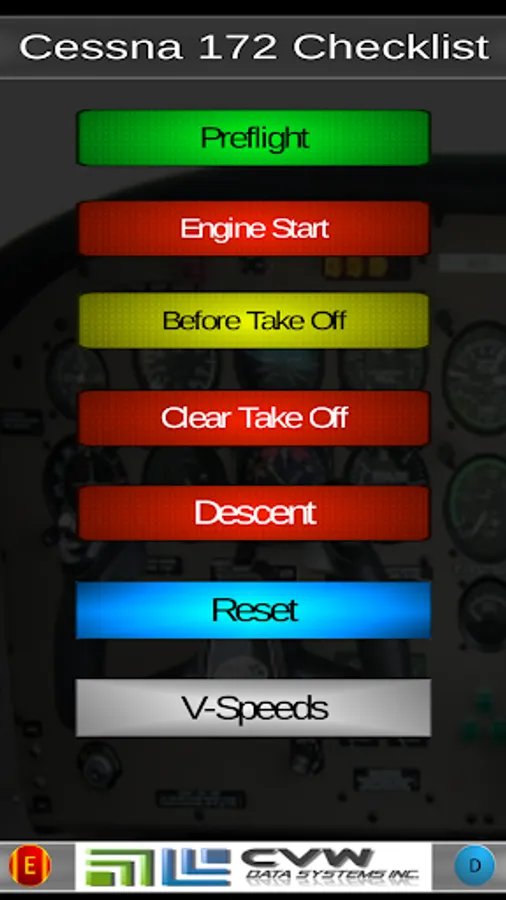 This checklist is for the Cessna 172 Skyhawk and this application is used to assist completing the steps required for the Cessna from preflight to shutting down and securing the Plane. This app will remind you what part of the checklist you have not finished yet, red means the task was not complete yellow means the task is almost done and green means the task is complete and you can move to the next task.
