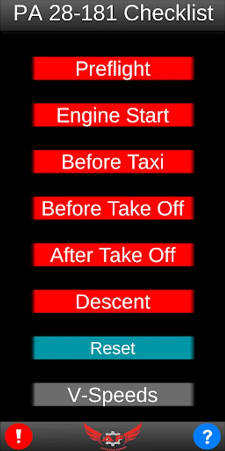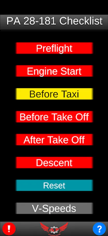 This checklist is for the Piper Archer 28-181and this application is used to assist completing the steps required for the Piper from preflight to shutting down and securing the Plane. This app will remind you what part of the checklist you have not finished yet, red means the task was not complete yellow means the task is almost done and green means the task is complete and you can move to the next task.