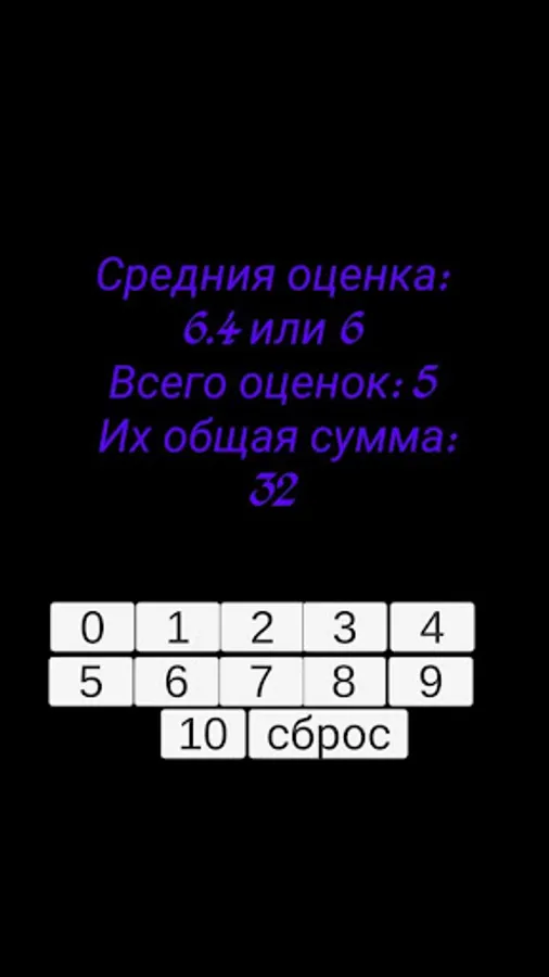 A useful and convenient tool for calculating the average and total score for the year / semester / quarter / trimester. It will be very useful teacher / student / student. Instead of a long and tedious work with a calculator, simply press a few buttons or not touch the screen at all: the application has a voice input function that allows you to enter voice ratings! After that, you can see the schedule, find out how the performance changed during the year. Having calculated the estimates separately for each subject, you can immediately find out the final one: this will help you with the function of calculating the total average score.