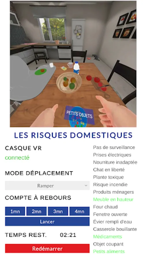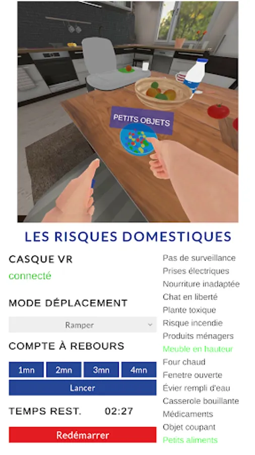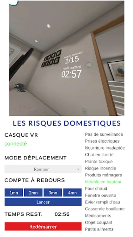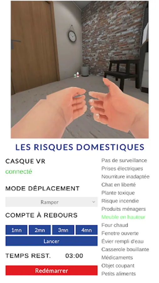 A management menu will then allow you to have a real-time view of the VR headset but also control over the countdown and the risks that have been found by the person.