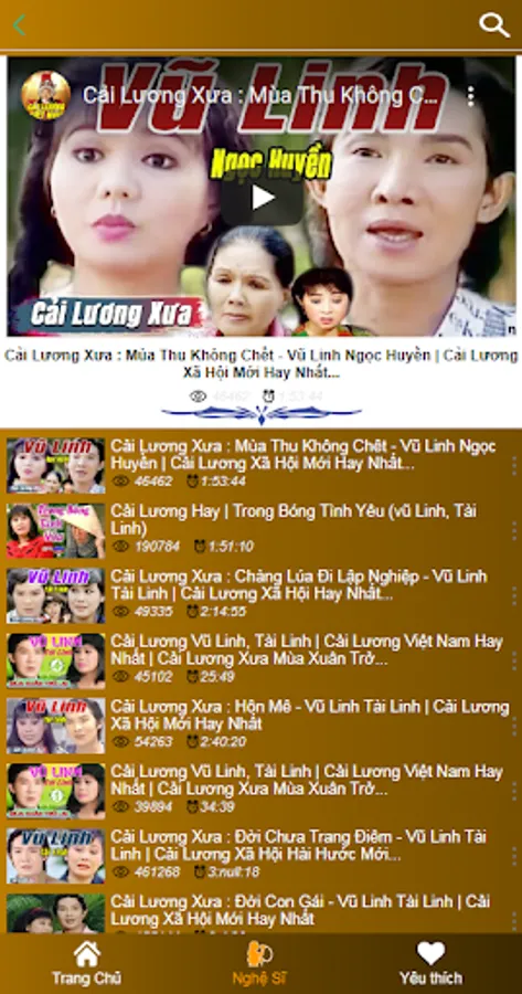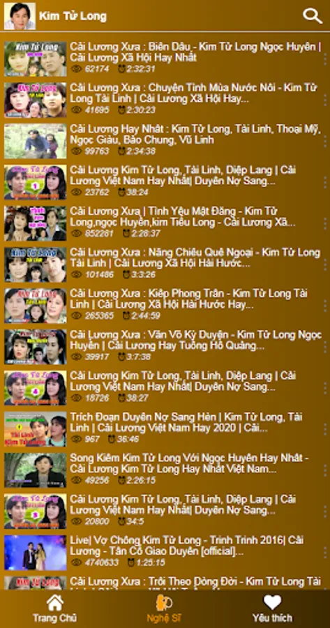The application provides a collection of classic songs, classical opera, famous for a while, performed by vocals such as Ut Tra On, Thanh Nga, Ut Bach Lan, Minh Vuong, Le Thuy, Tan Tai , Ngoc Giau, Phuong Lien, Thanh Kim Hue, Thanh Tuan, ..