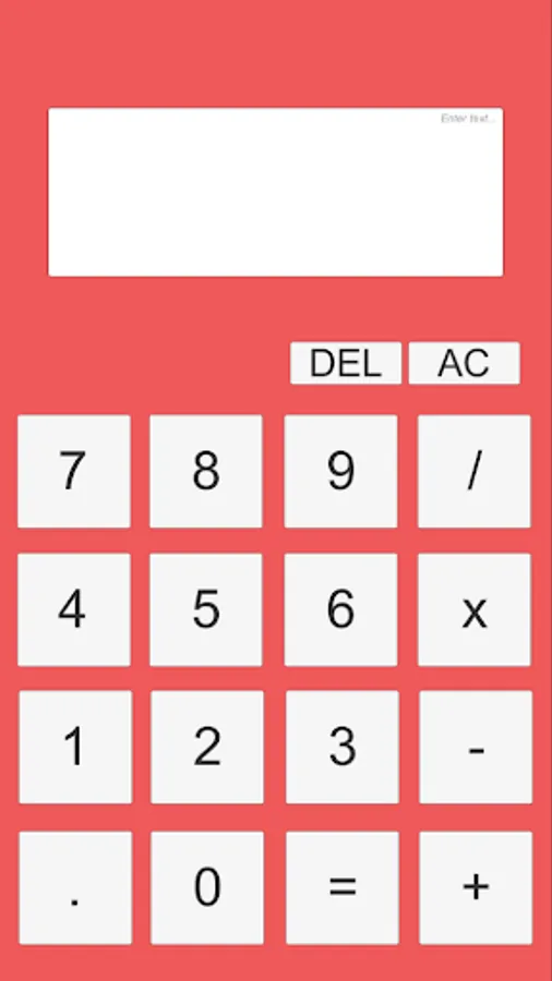 Cette app est une calculatrice qui permet de calculer des opérations du premier degré à deux termes. Une opération avec plus de deux termes causera une erreur dans le système. Seulement les quatre opérations de base sont disponibles (additionner, multiplier, diviser, soustraire) ainsi que des boutons pour chaque numéro et un pour une virgule, un bouton pour revenir en arrière et un bouton pour tout supprimer de l'écran.