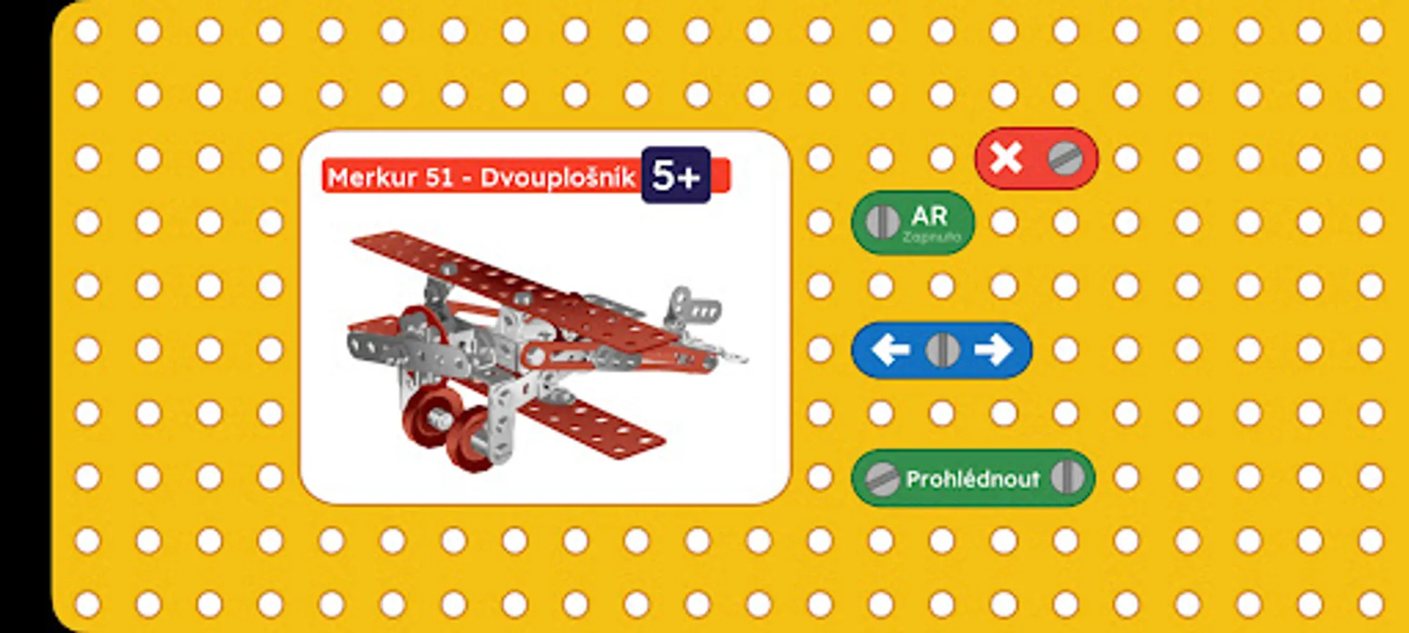 The application allows you to view a detailed manual on how to build the Merkur kit. The environment is further expanded with AR technology and all models and manual steps can also be viewed in augmented reality.