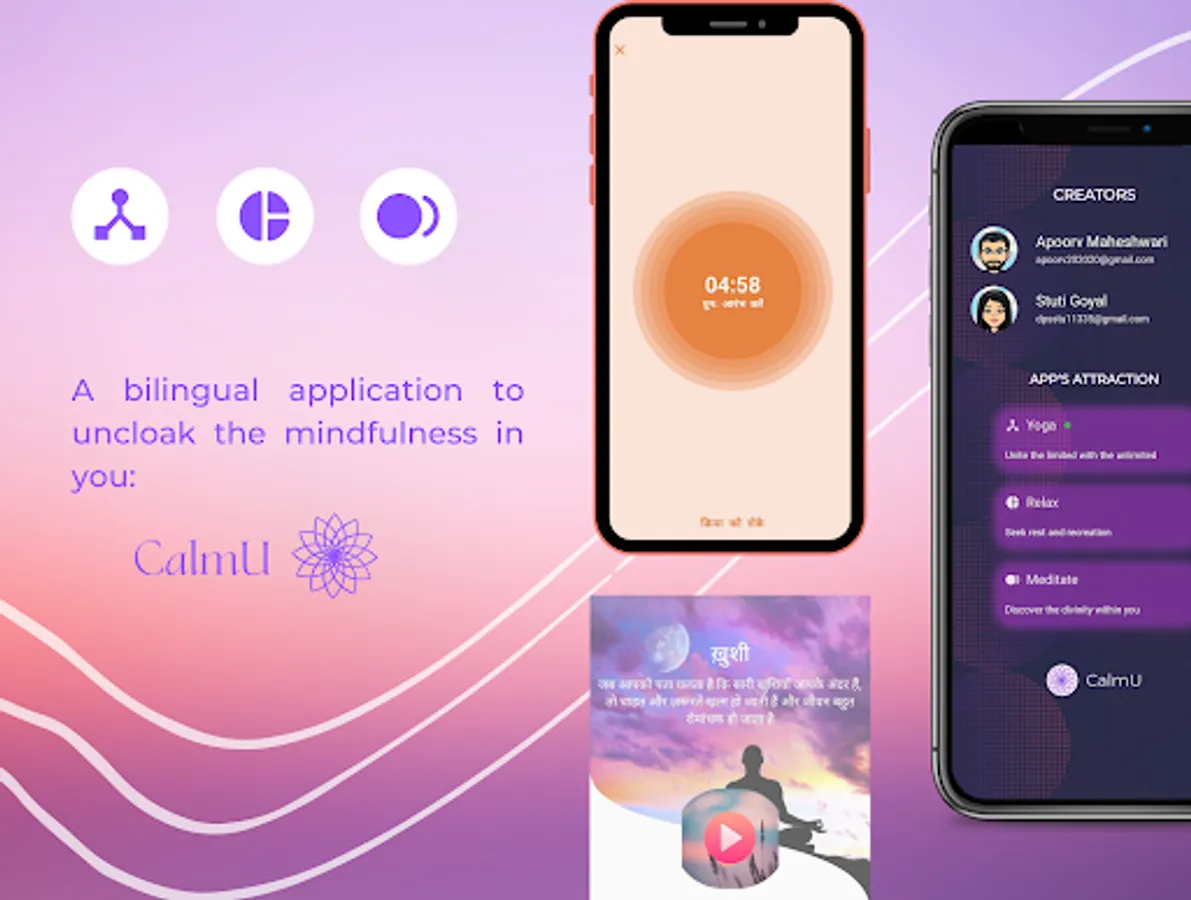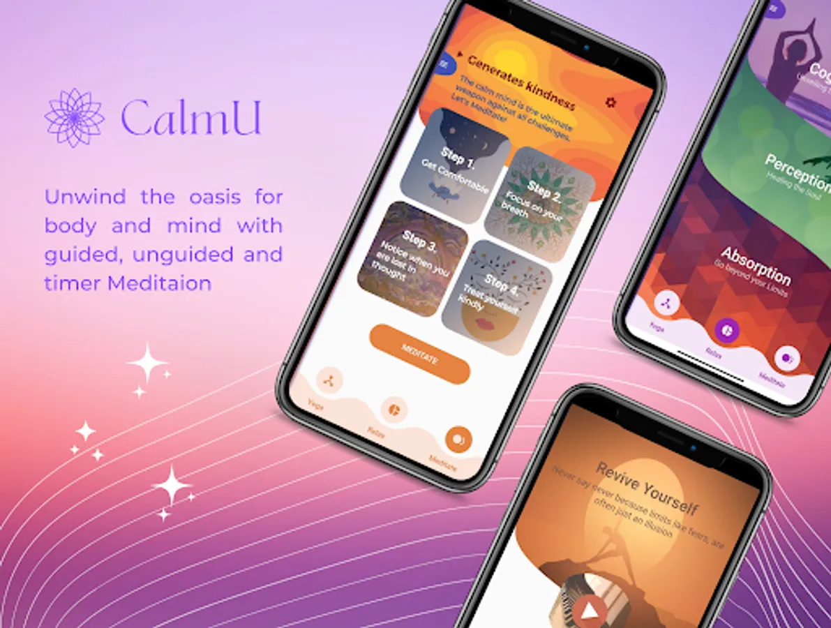 CalmU is a pioneering healthcare application that helps to unveil the inner you through structured yoga, reflective practices, guided rumination and alleviated music. It is the solution to all quandaries such as stress, apprehensiveness, lack of focus, fear, mood swings, sleeplessness, woebegoneness, self-doubt, worries - all stem from the body and the mind.