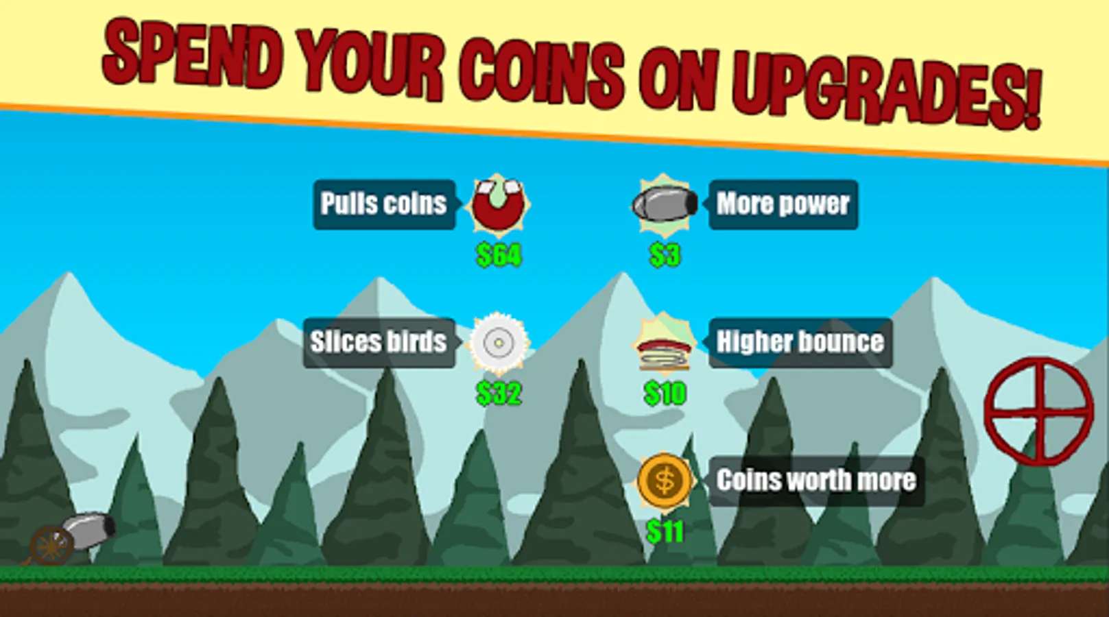 • Upgradable elements to help you on your way. Boost your cannon and springs to catapult you further into the forest. Pick up a saw to deal with those pesky birds.