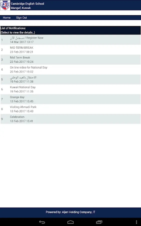 This app is designed for a private School to show messages to the students & parents. The school mainly used to send messages for events, functions, results, news, announcements, attendance, grades, health news, map, counselling, course schedule etc.