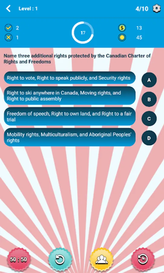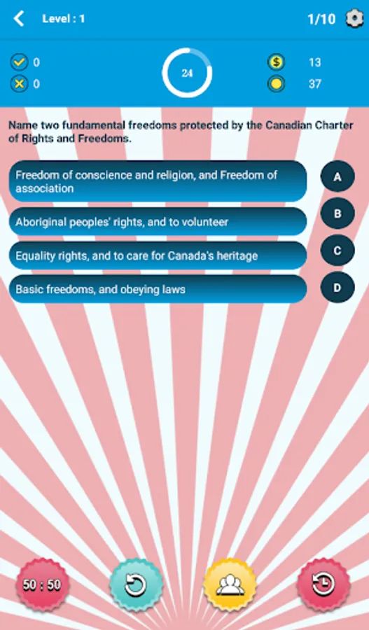 Cette application mobile quiz de la citoyenneté canadienne qui fonctionne en mode en ligne et hors ligne est facile à utiliser sur votre téléphone et plus rapide en plus elle offre un programme de formation unique qui se ressemble au test de citoyenneté et vous permet de mémoriser l'information requise de manière plus simple et rapide. On peut dire que ces questions ont une haute probabilité d'être posées à l'examen réel.