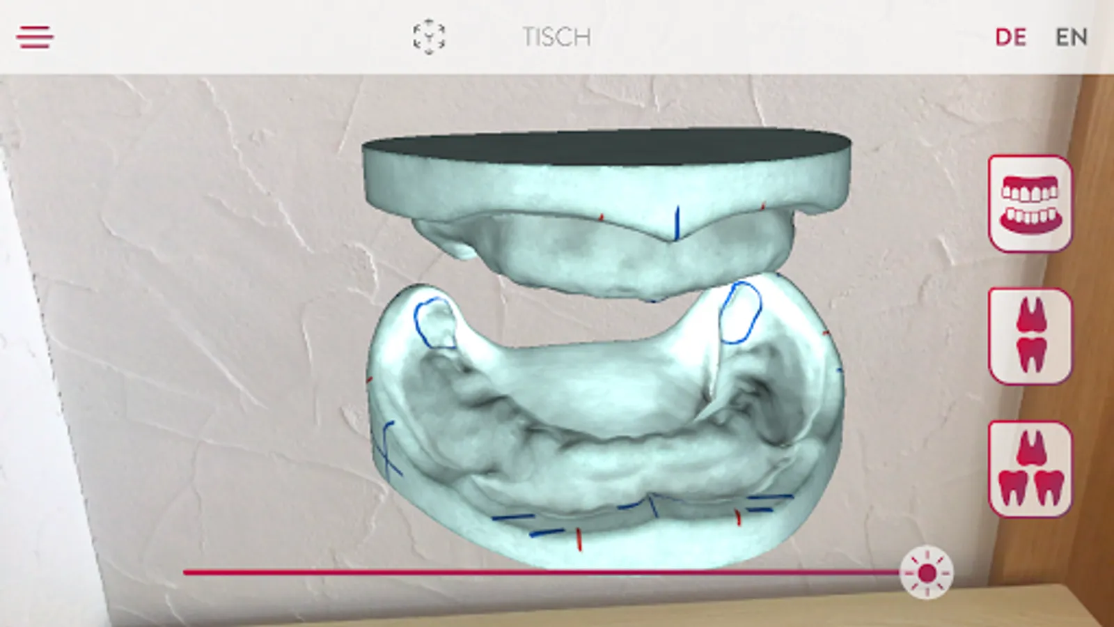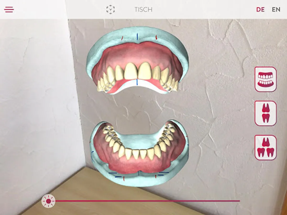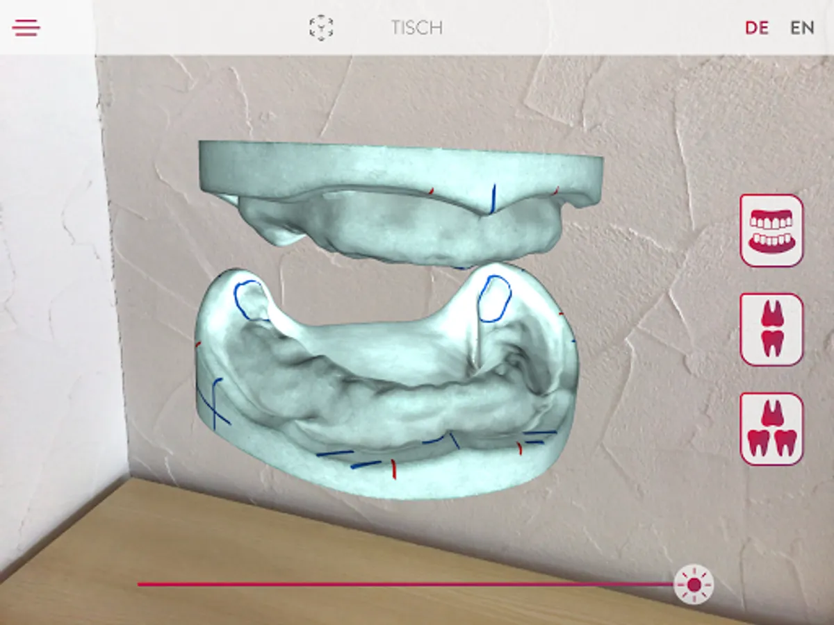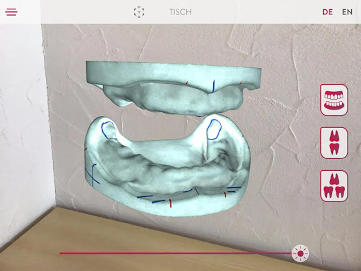 Get to know the Candulor tooth line PhysioSelect TCR and BonSelect TCR via Augmented Reality. You can have the tooth lists, impressive in the room, displayed as a table version via a so-called stand version or one size smaller. In addition to the two tooth-to-tooth and tooth-to-two-tooth setup variants shown, there is also a model analysis to show how the teeth are positioned in a stable position on the alveolar ridge. Contact zones marked on the teeth show the areas in which the respective antagonist contacts can be found.