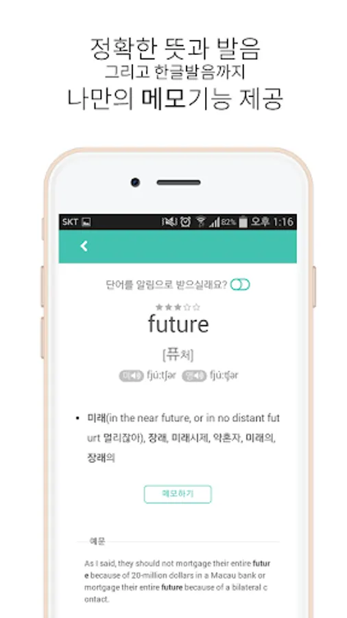 Ah Dictionary provides Hangul pronunciation so that you can easily read the phonetic symbols, as well as memorizing function.