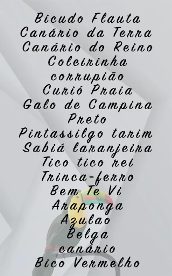 Enjoy the most beautiful bird songs in Brazil in a single application! Let yourself be enchanted by the unique and relaxing sounds of the most beautiful birds in the country, including the song of the orange thrush and the hummingbird. With a complete list of songs, this app is perfect for lovers of nature and bird music. Download now and start listening to the peaceful sounds of nature!