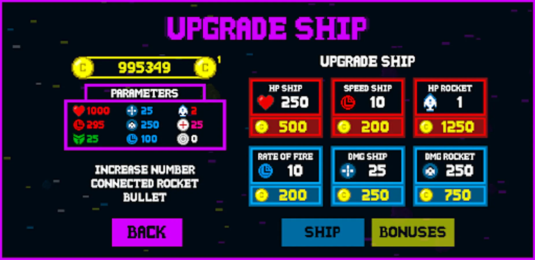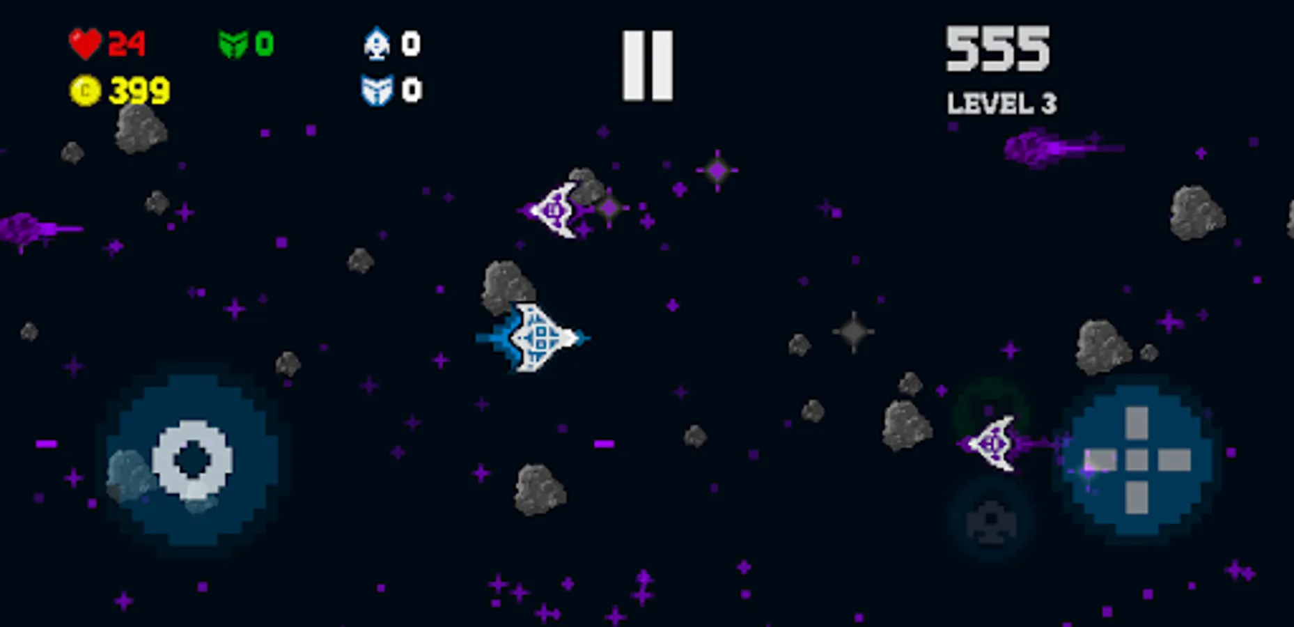 You are trying to survive by shooting enemy ships in space. With the money you save over time, you can buy new ships and improve your ships. You can increase its armor and health points.