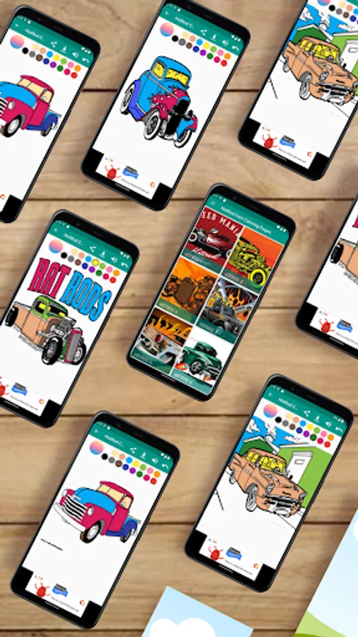 This virtual Hot Rod Cars Coloring game is full of old vehicle, Rat Rods Cars on Android now! You can fill color all you want on Hot rods are typically old, classic, or modern American cars that have been rebuilt or modified with large engines modified for more speed and acceleration.