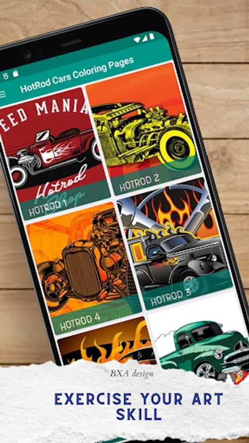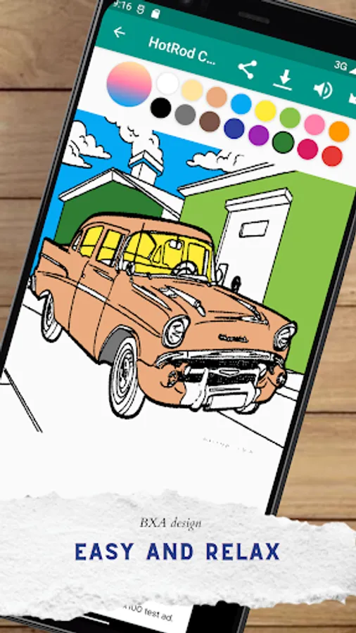 ★This app will develop your creativity in explore your imagination and coloring skills. many types of HotRod, for examples: Gow job, Coupe, Tudor, Business coupe, Roadster, and Hi-boy, thats all the best part of this app!
