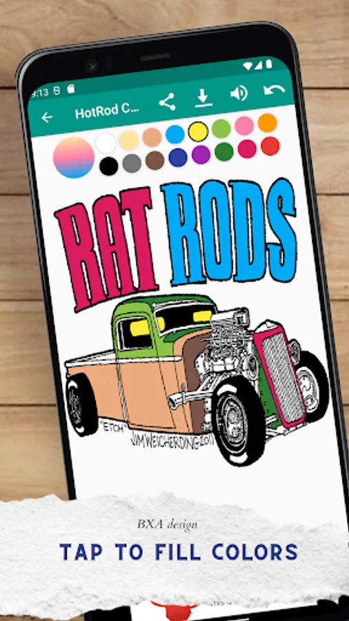 You can explore all you want on Hotrod vehicle Coloring, Rat Rods, Retro Cars, Old and Classic style , German, American, Europe Cars Coloring. tap and fill to develope your art skills !