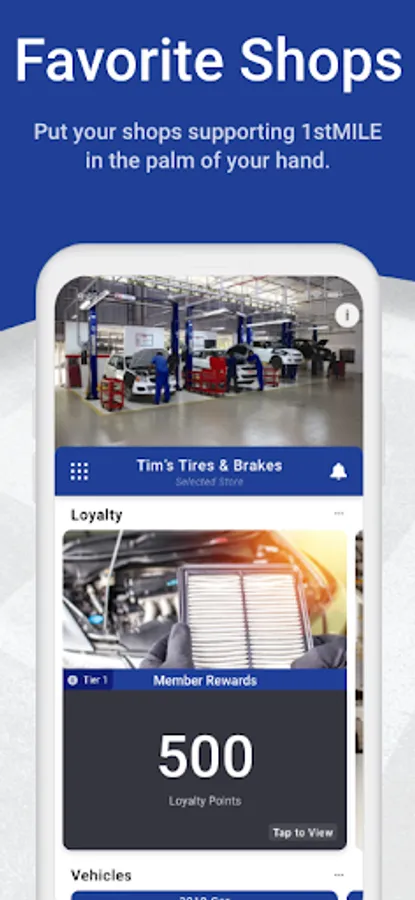 Working with 1stMILE shops is just as easy, putting your favorite shops in the palm of your hand. Select the participating shops near you and switch between each shop for the service you are looking for. Rewards are tracked by shop and can be from any or all your vehicles.
