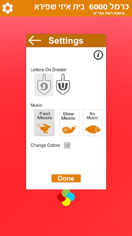 Color Setting is not available while dreidel is spinning.