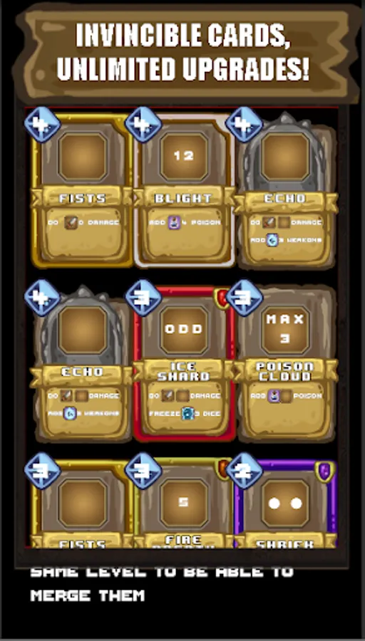 Step up, stack up awesome cards and fight like your life depends on it, for the never-ending waves of enemies will never give up. And remember, once you die... the only way is to start all again! So be careful!