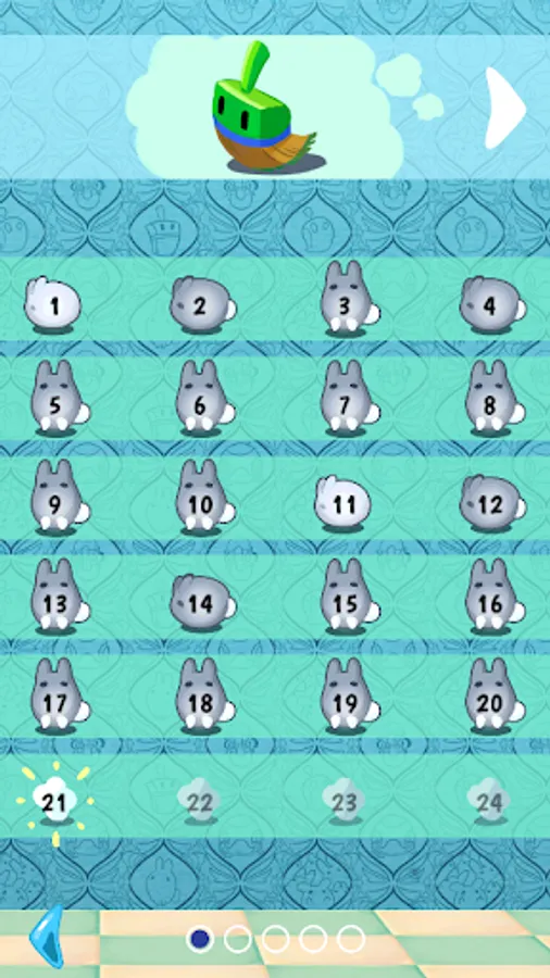 ◆ Play it by ear! Your goal in each room is to sweep the dust bunny under the rug, but you can test yourself by sweeping up the optional and more difficult dust puffs, too!
