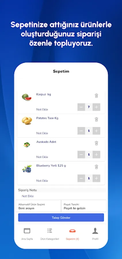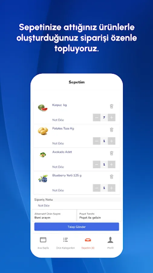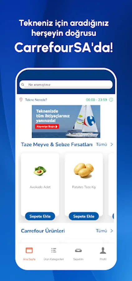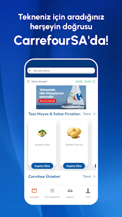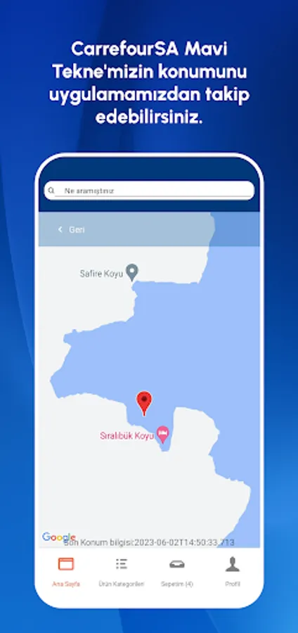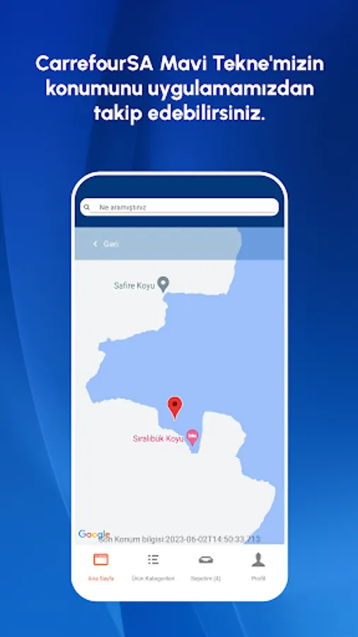 It is the CarrefourSa application developed to place an order for CarrefourSA's "Blue" market boat and to see the boat location.