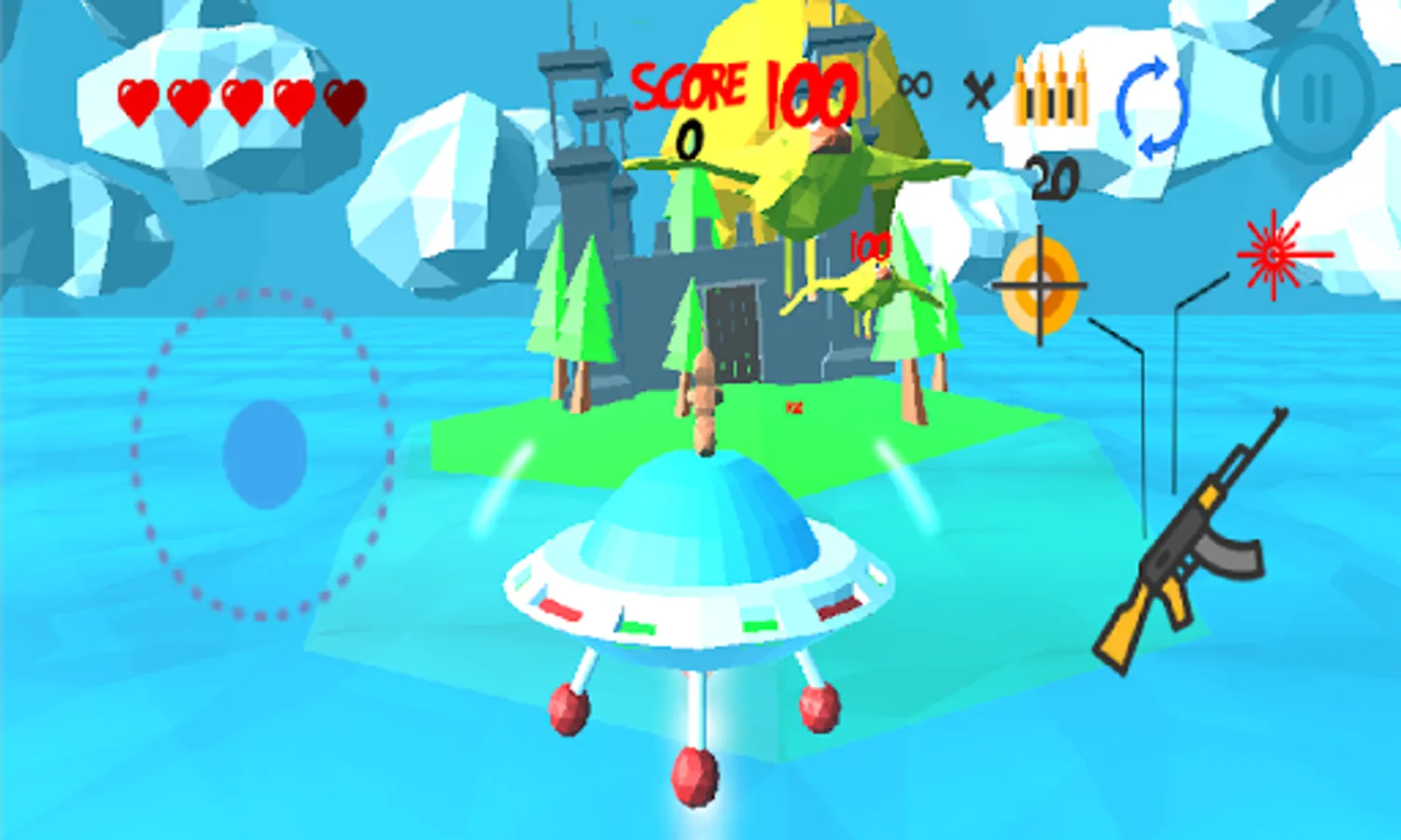 You should control the worm using the joystick and shot birds and fishes with the gun