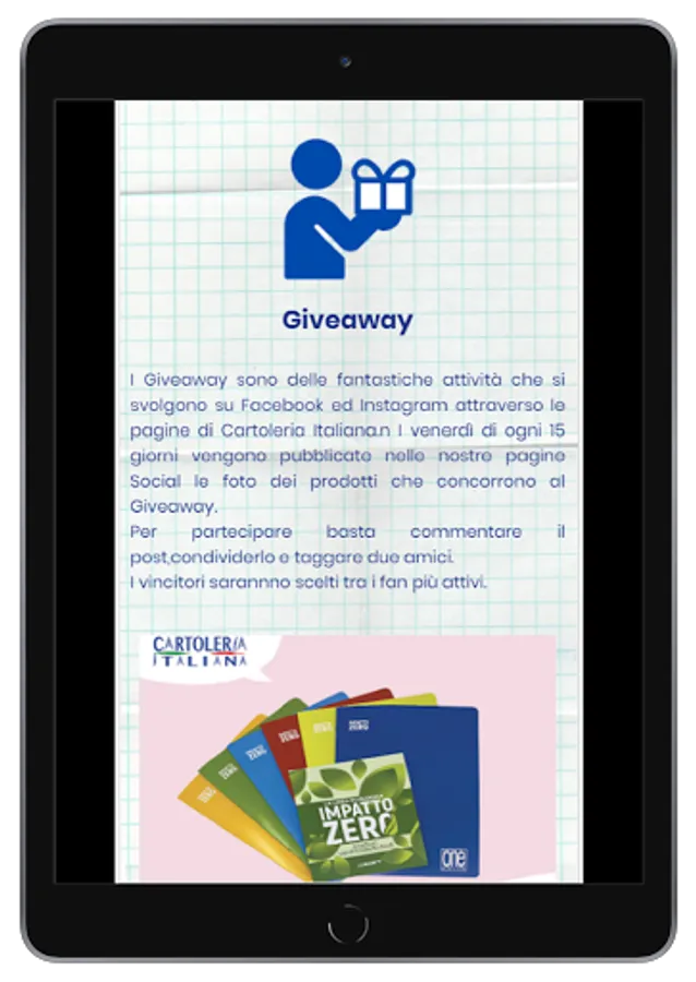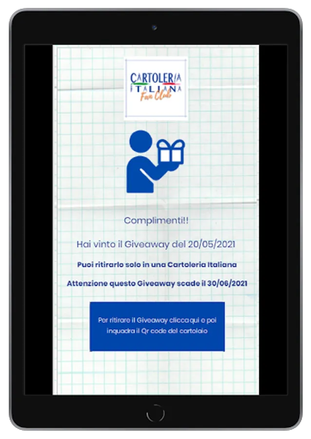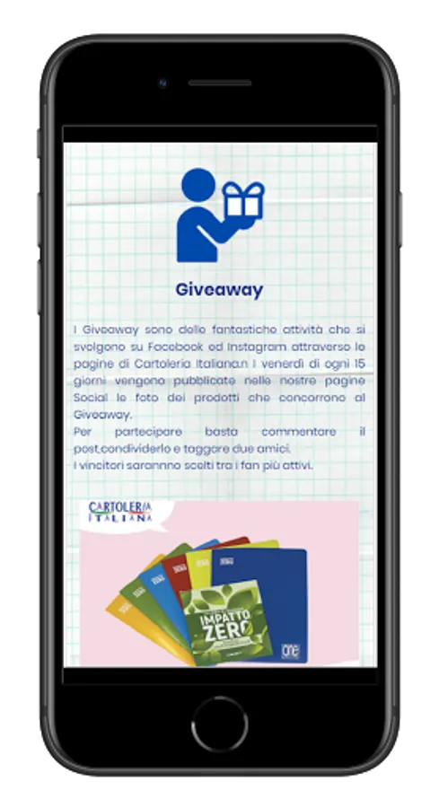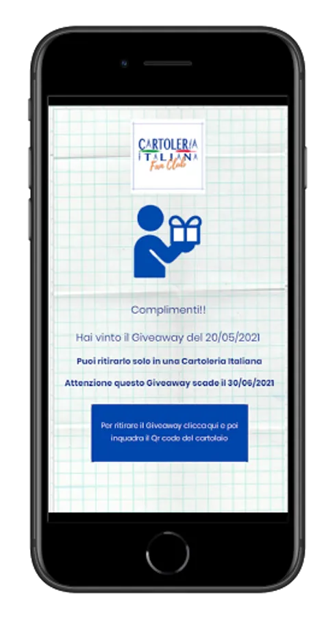 Through the app it will also be possible to collect the GiveAway offered every Friday by Cartoleria Italiana, framing the QR code displayed by the stationer in the stationery.