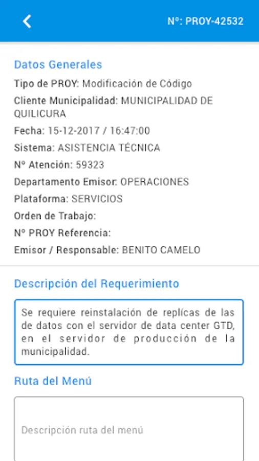 Mobile application whose main function is to effectively monitor the requirements requested by CAS-CHILE® clients, visualizing Proy type, history of changes in the proy description, status of each project, progress and all the information related to the same.