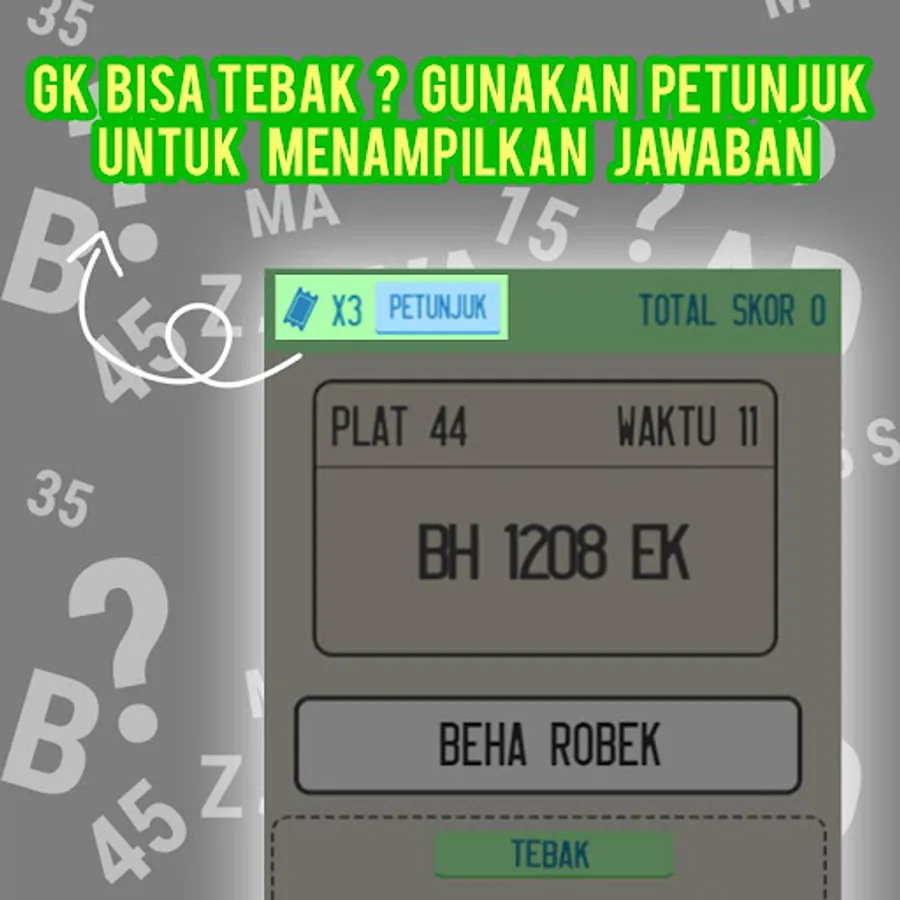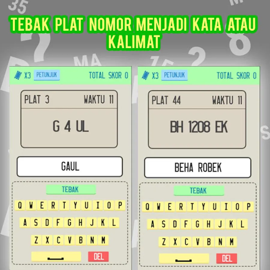 Dalam game ini kamu bermain tebak-tebakan plat nomor unik menjadi sebuah kata atau kalimat dalam waktu yang singkat di setiap plat nomor.