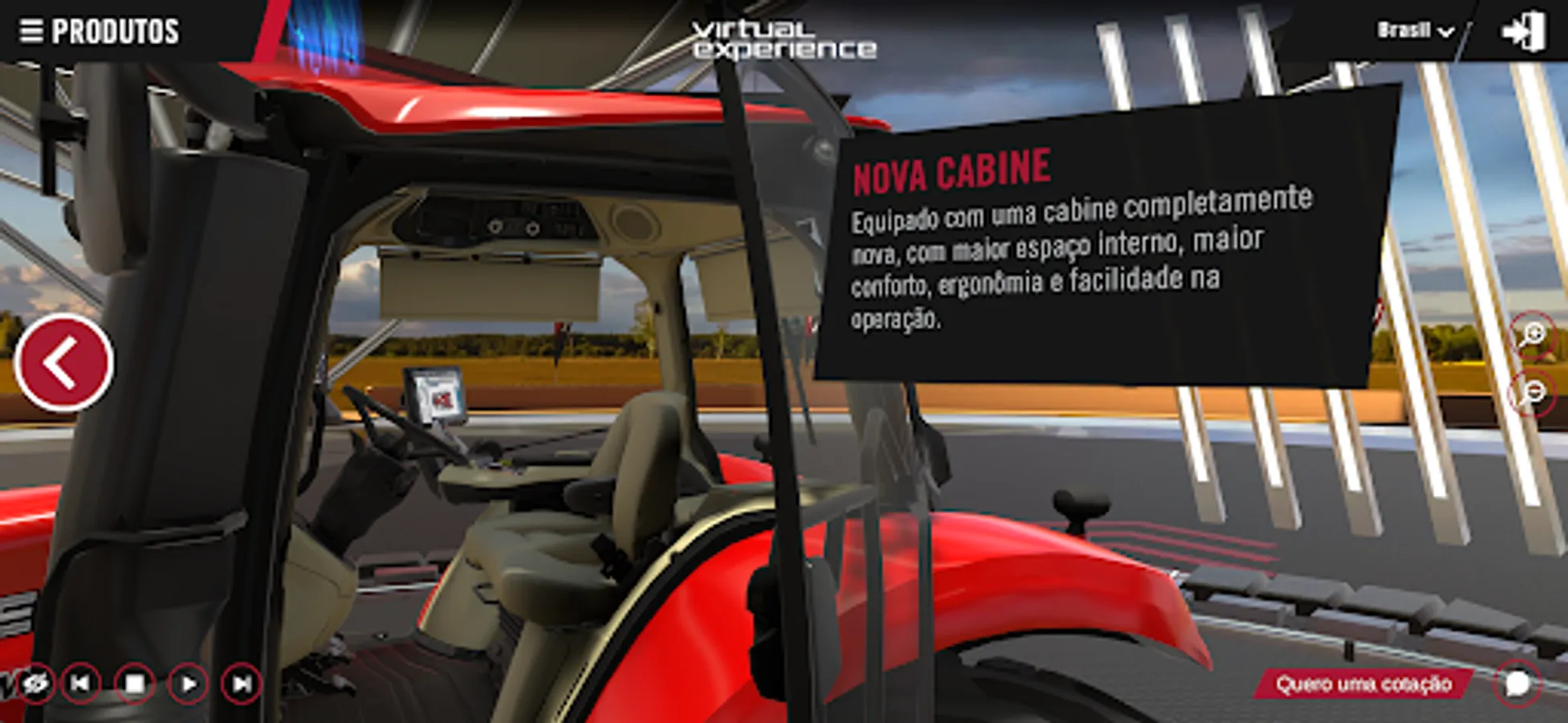Case IH Virtual Experience is present in several markets, therefore, in the Virtual Show Room, it is possible to interact with machines available in different regions.