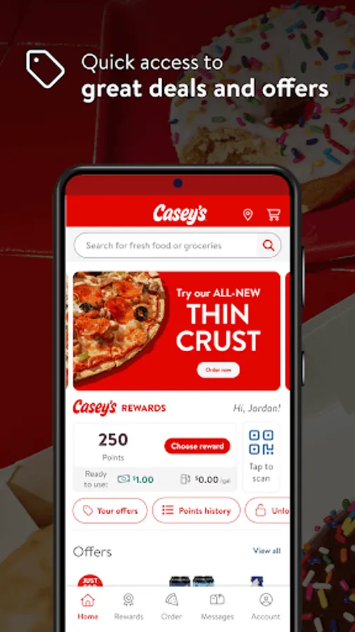 Order a famous made-from-scratch Casey’s pizza, for carryout or delivery, with the all-new Casey's app. Browse our menu, see the best deals, customize your pizza, and place an order fast! And when it's time to order again on Friday, you can reorder your favorites with just a few taps.