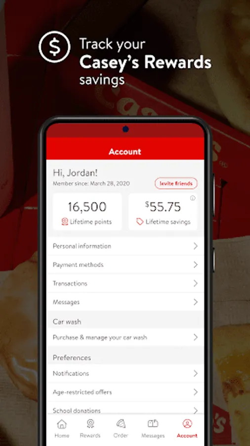 Download the Casey's app today – and create an account to join Casey’s Rewards – so you can earn points, save your favorite order, set a default credit card, and search for nearby gas prices.