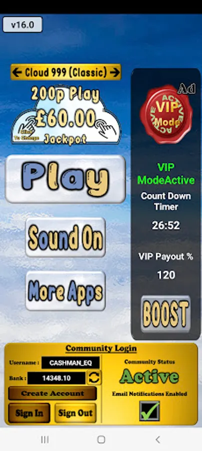 Cloud 999 UK Community Slot: Community Edition is a slot simulation with real-life playing and payout characteristics.