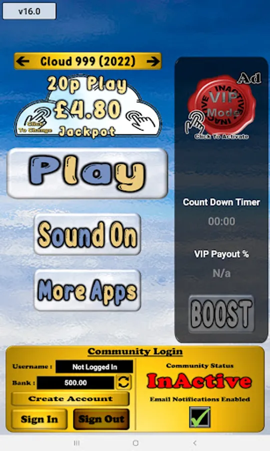 ● Cloud 999 £500 (2022) - B3 Style Slot (£2 Play £500 Jackpot) : All Wins Doubled With Clouds inc Jackpot Symbols