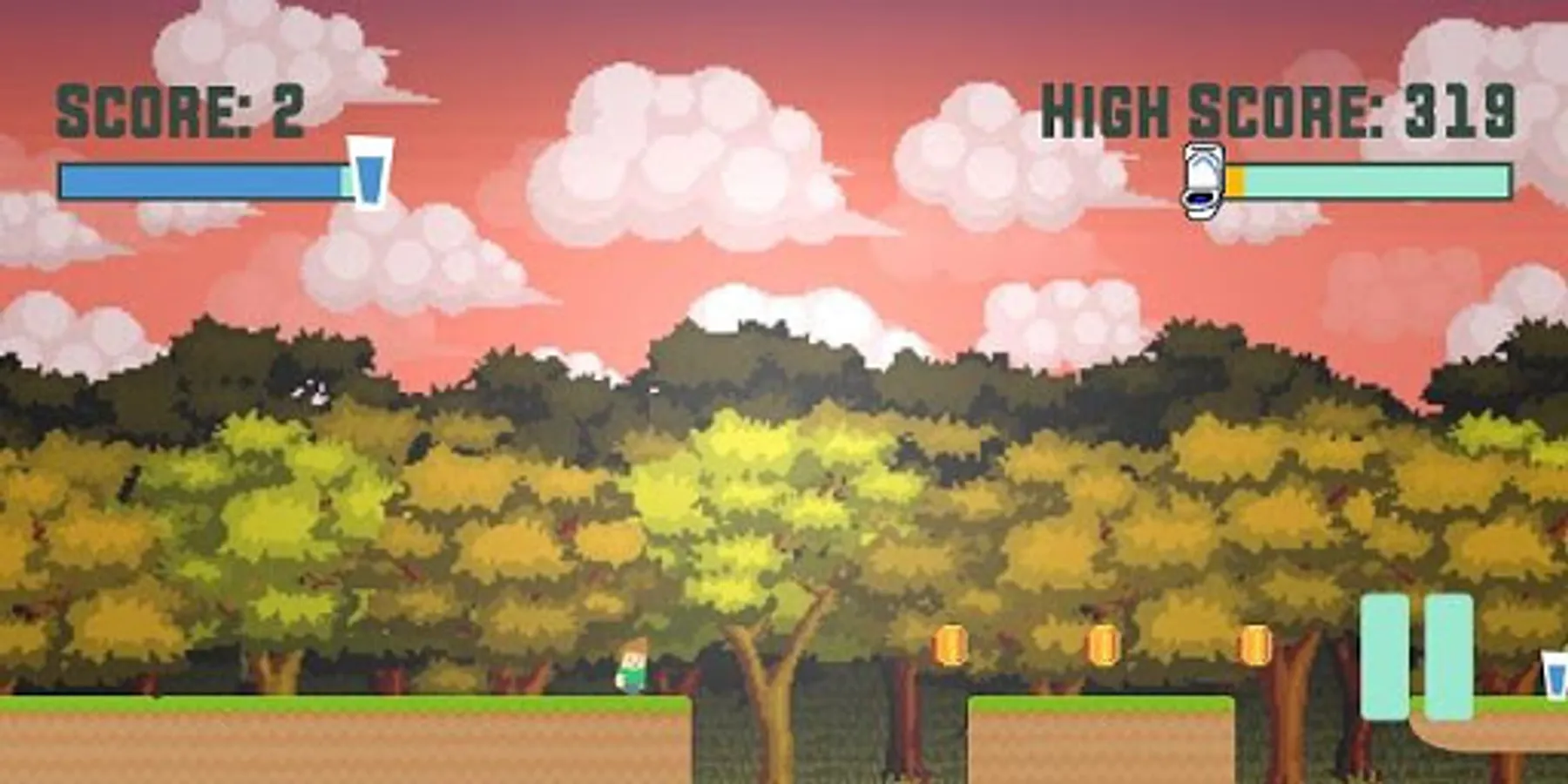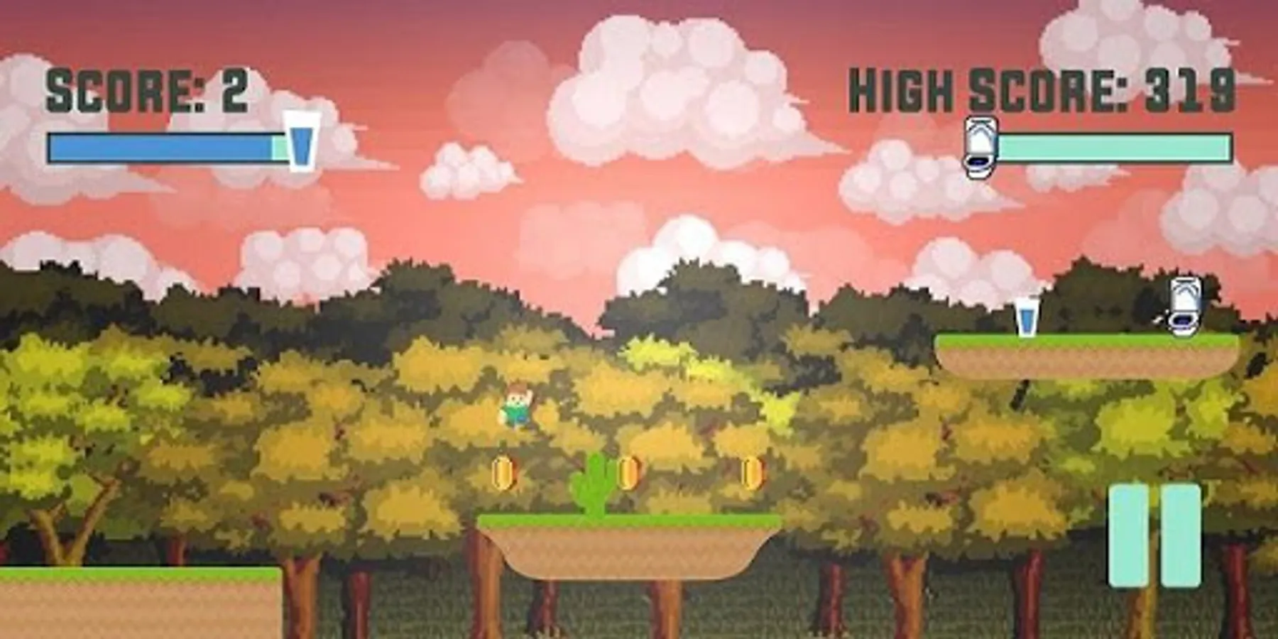 It's a fine line! Drink the water so you can keep running but don't drink too much without hitting a toilet! See how long you can hold it in this platform runner!
