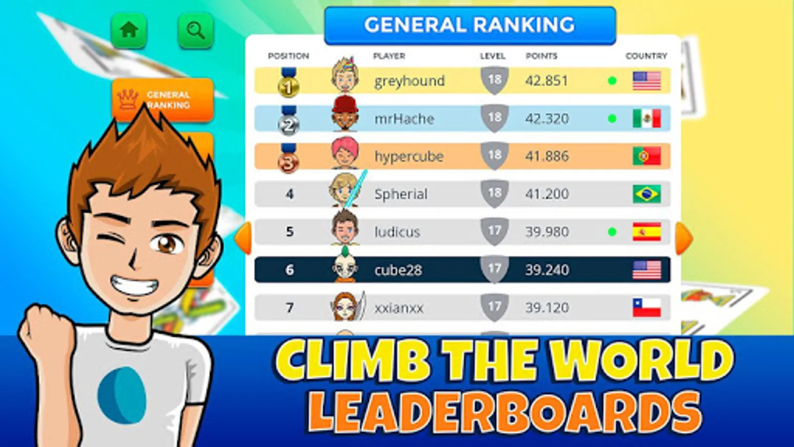 • Get points to level up and get yourself ranked on the rankings: global, monthly and country rankings.