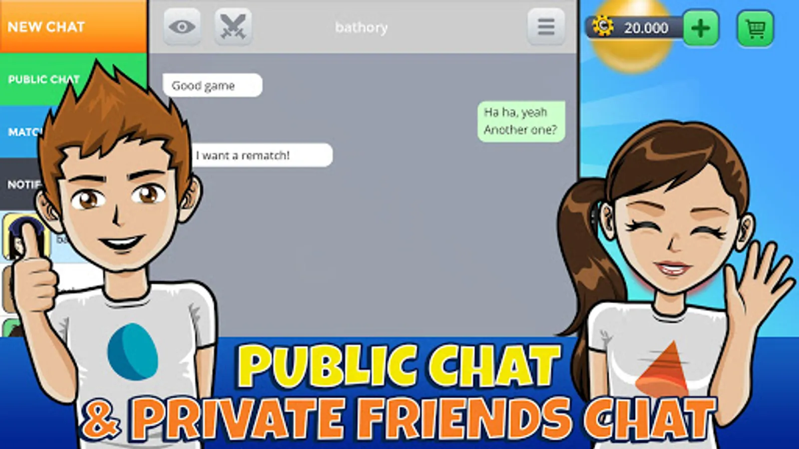 • Chat with your opponent through the chat and add him to your friends list to be able to play more matches.