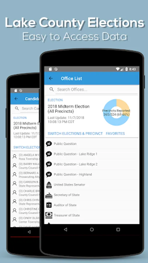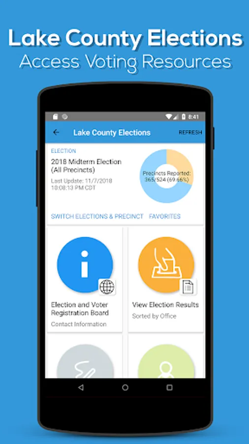 This app puts a variety of voting resources at your fingertips. The app provides information for upcoming elections, past election results, real-time updates to current election results and links to various resources related to the county election process.