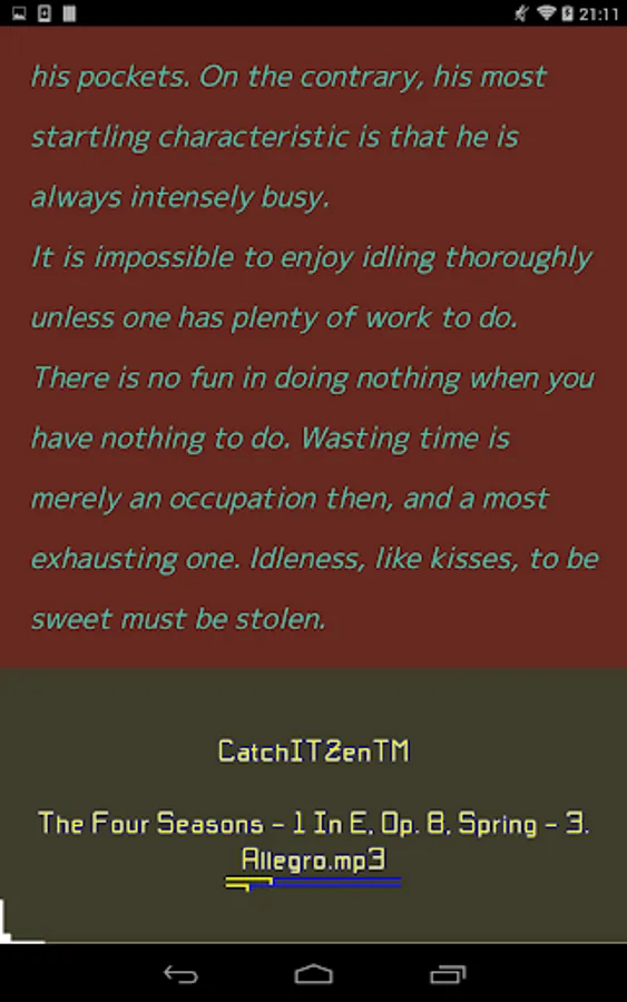 * Hint to the language learners: When reading a book with its audio, you can use the “Forward” functionality of the music widget to lower the speed of the audio.