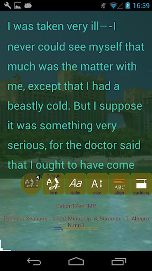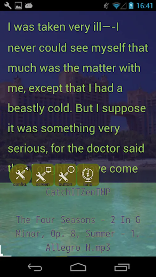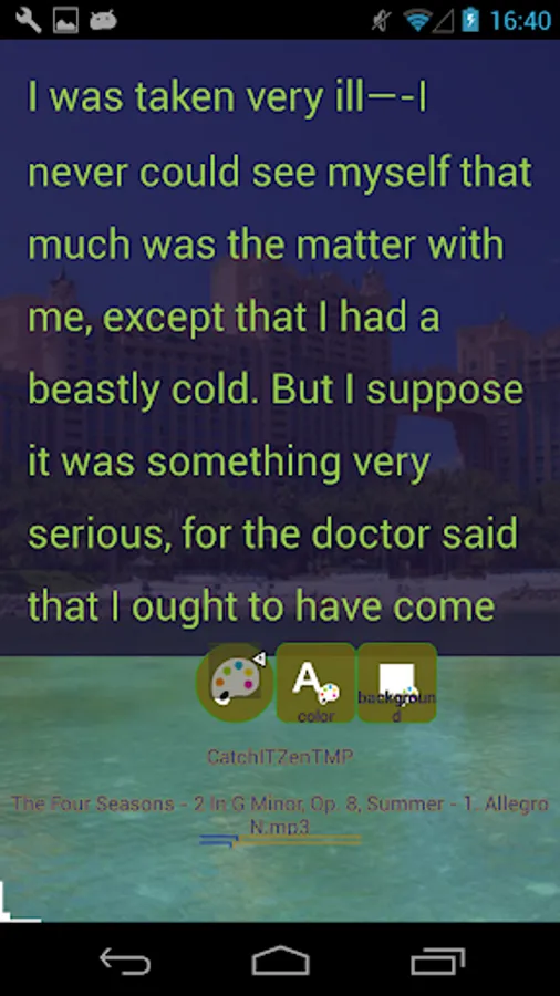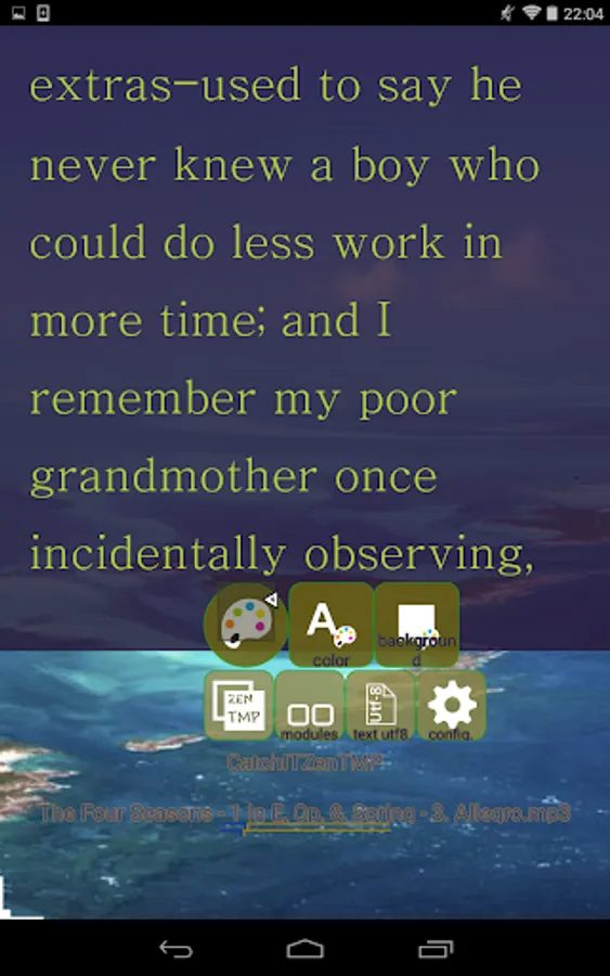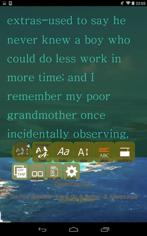 * Hint: When reading with music, you can use the "Forward" functionality of the text widget to set the pages auto changing speed.