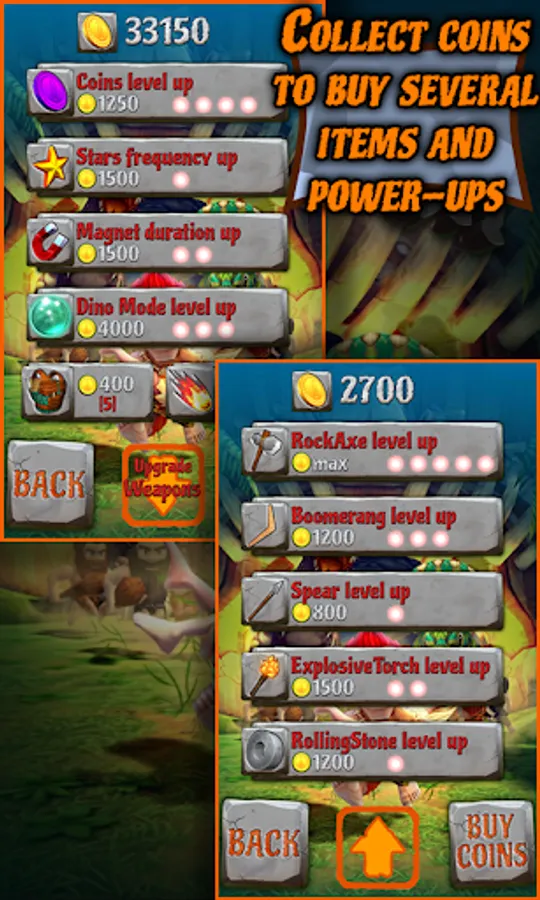 Equip the armor, grab your precious weapons like the boomerang, the spear and the axe and face the danger without hesitation. Use the weapons to hunt cavemen and creatures!