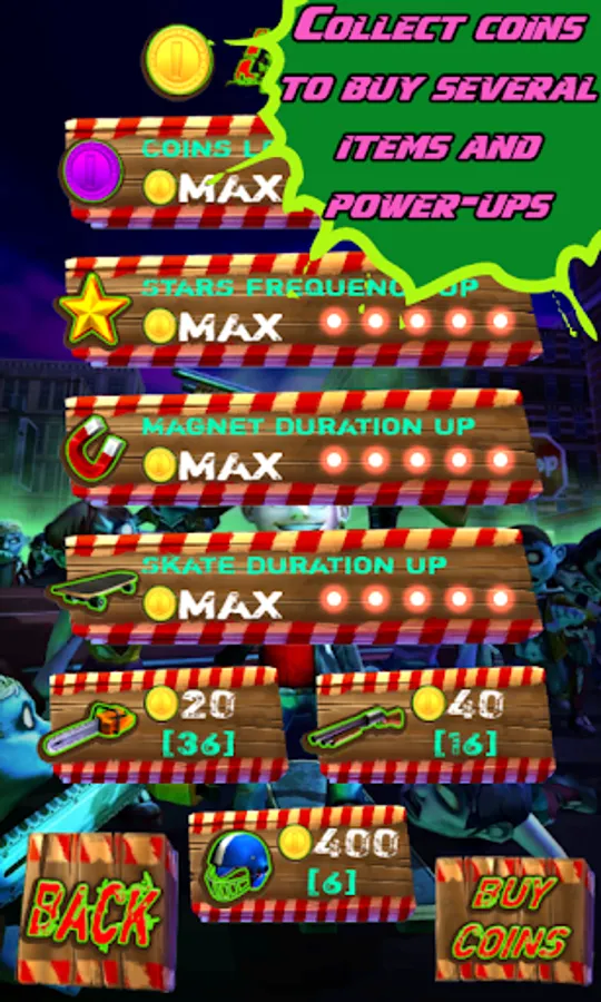- Collect coins to buy several items and power-ups in a well assorted virtual store!