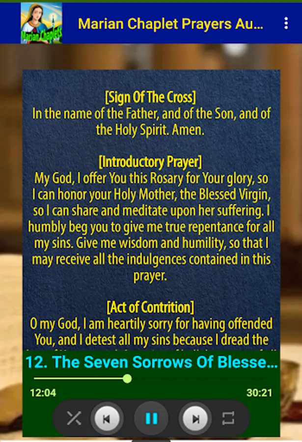 Marian Chaplet Prayers Audio is the ultimate app for anyone seeking a deeper connection with the Blessed Virgin Mary. With both audio and text options, this app offers a truly immersive experience that lets users engage with Mary's devotional prayers in the way that best suits their needs.