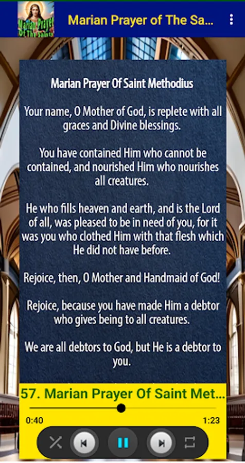 With the "Marian Prayer of The Saints" app, users can immerse themselves in a spiritual journey by exploring a rich variety of prayers that express devotion and reverence towards the Blessed Mother. Whether you are seeking solace, guidance, or simply wish to deepen your connection with Mary, this app offers a diverse selection of prayers to choose from.
