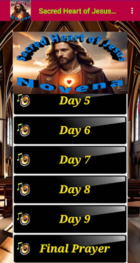 Step into the world of faith and spirituality with our warm and welcoming Android app, "Sacred Heart of Jesus Novena." This app is your companion on a beautiful journey of Catholic devotion, centered around the Sacred Heart of Jesus. We've designed it to make your experience as enjoyable and accessible as possible, offering both audio and text formats so you can engage with the novena prayer in the way that feels just right for you.