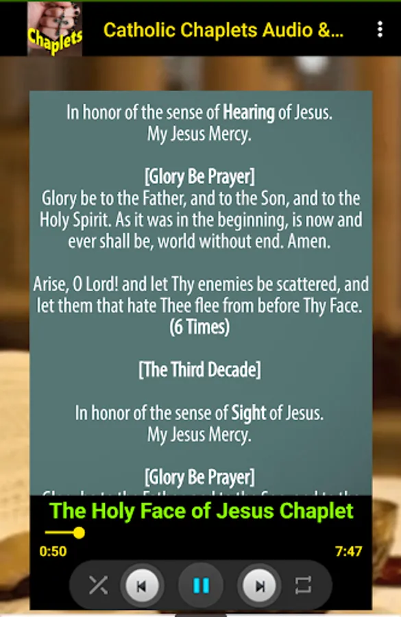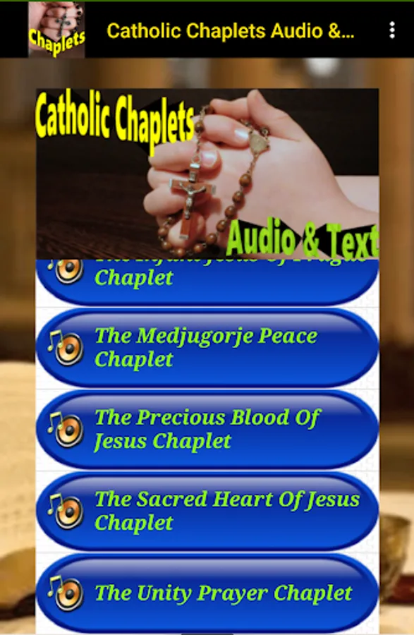 The user-friendly interface makes it easy to navigate and select your desired chaplet, with the option to listen to the audio recording or read the text at your own pace. Whether you're at home or on-the-go, this app provides a convenient way to incorporate chaplet prayers into your daily routine.