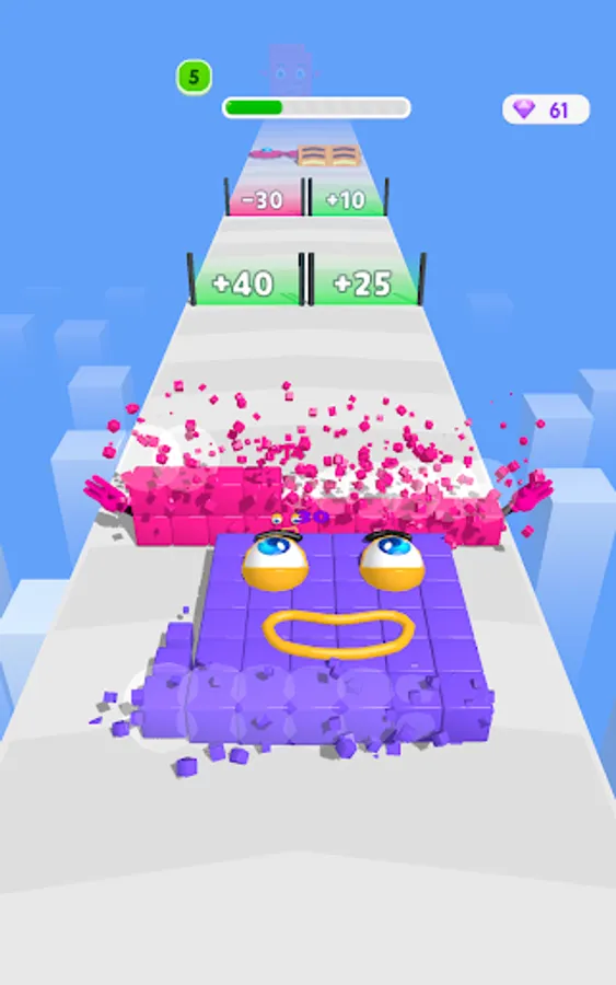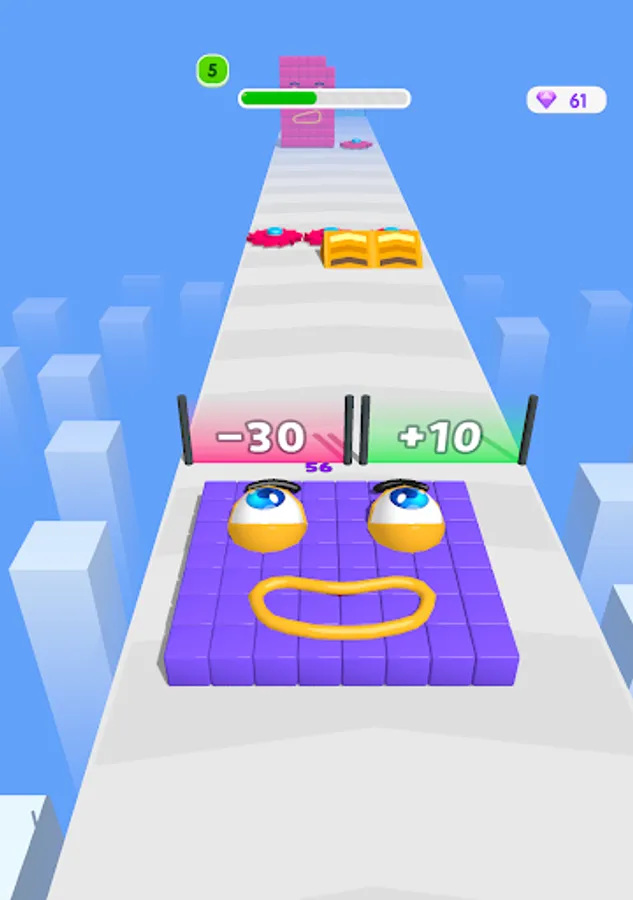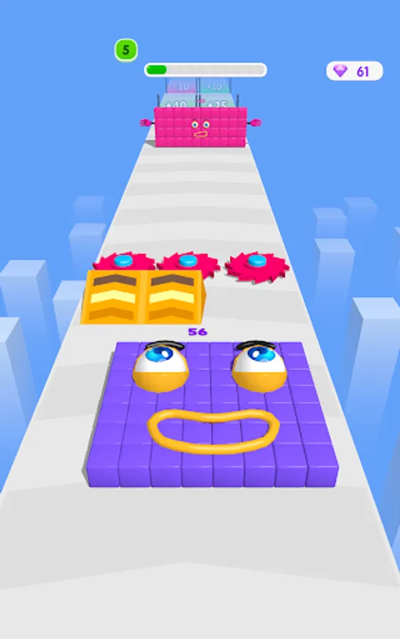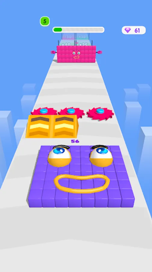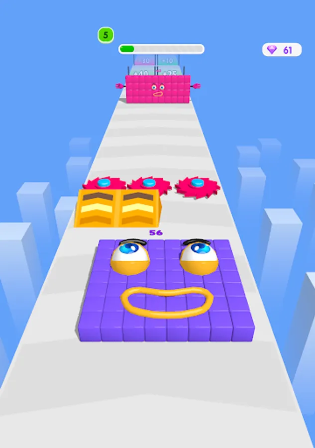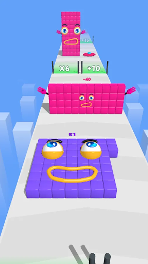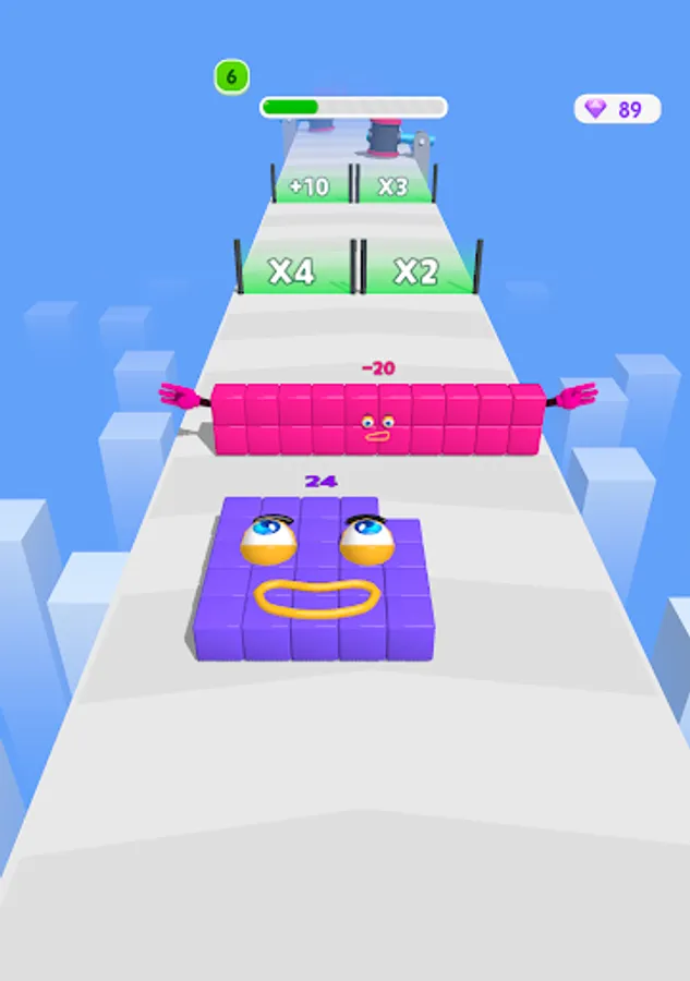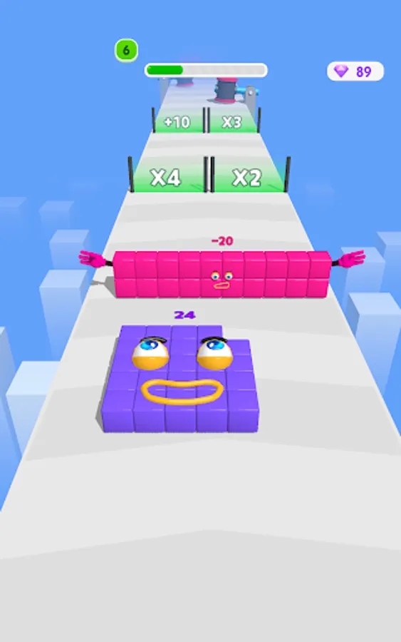 Grow Your Number Blocks Characters.Drag Left And Right to grow to the biggest number. Avoid obstacles to Which can decrease Your Number so can Complete the Run.